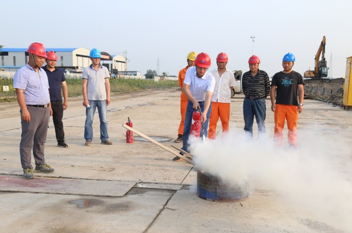 演练开始前,专职安全员通过PPT及视频就消防逃离、自救、灭火等作了消防安全知识教育培训。通过消防灭火的实战演练,大家在活动实践中掌握了消防器材的操作要领,提高了防火意识和自救能力,增强了消防隐患排除、消防事故救援的本领,为重点工程建设提供了安全保障。