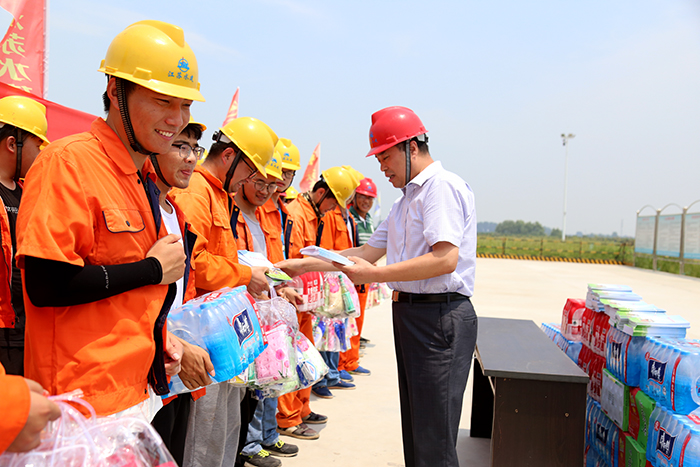 7月31日上午,扬州市总工会党组成员、副主席陈锡朝率队赶赴我世俱杯网页版登录入口位于常州的省重点水利工程界牌枢纽,慰问了施工现场500余名一线员工,给他们送去了防暑降温用品及职工劳动保护手册,让高温下坚守岗位的一线员工切实感受到工会组织的关爱。世俱杯网页版登录入口党委副书记、工会主席姜启生陪同慰问。
