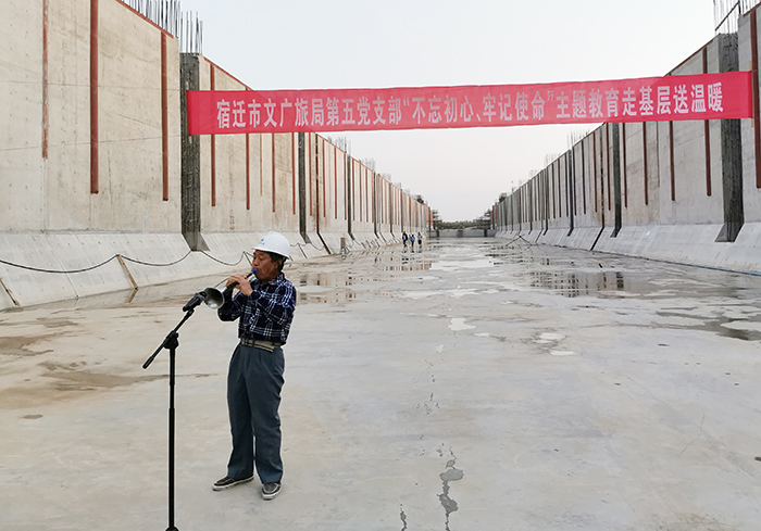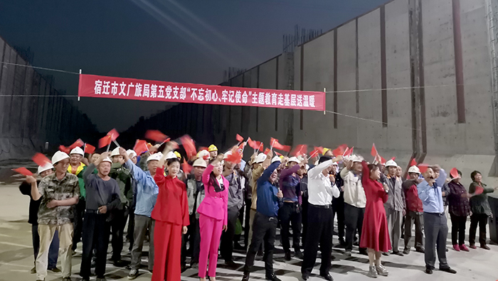 10月8日,宿迁市文化广电和旅游局到我世俱杯网页版登录入口三分世俱杯网页版登录入口承建的宿迁市陆运河船闸工地开展了慰问演出活动,向国庆假日期间坚守在工地的广大职工献上了一场精彩纷呈的文化盛宴。陆运河工程建设处、监理处、项目部80余人在工程现场观看了演出。