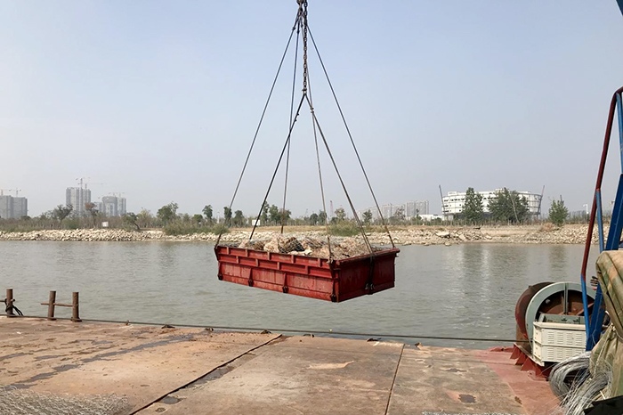 1021日下午430分,随着指挥长一声令下,最后一箱赛克格宾准确地抛入江中,南京市长江干流江苏段崩岸应急治理工程施工六标段抛石施工提前完程施工任务。