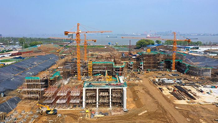 由我世俱杯网页版登录入口承建的定波水利枢纽工程于2019年9月17日正式开工,受疫情等因素影响,工期延误多天。为实现5月31日前具备开坝放水条件的目标,项目部全体人员大力发扬水利建设者不怕苦、不怕累的精神,昼夜奋战抢工期,全面掀起抢工赶工热潮,展现“江苏水建速度”。