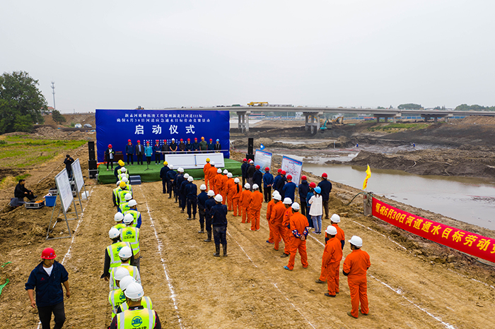 5月的工地晨风微拂,司旗招展,机声隆隆,河道雏形初现,项目部各施工班组整齐列队,拉开了确保630河道应急通水目标劳动竞赛活动的序幕。