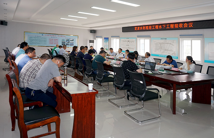 6月17日,无锡市水利局在定波水利枢纽项目部组织召开水下工程验收会议,验收成员抽查了泵站闸门运行情况,经充分讨论,一致同意定波水利枢纽通过水下工程验收。