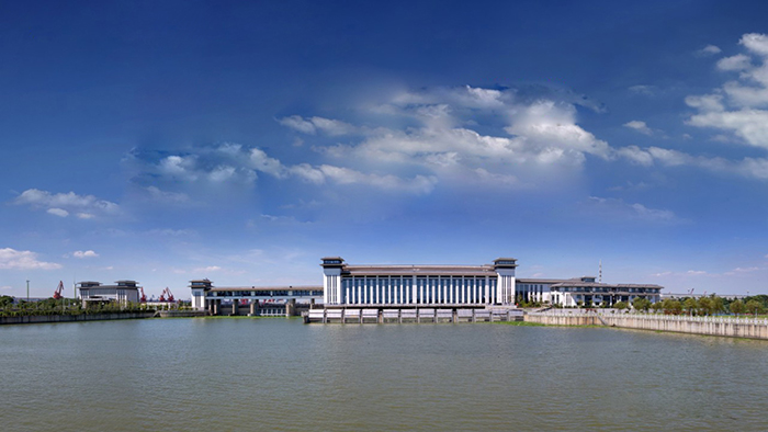 新沟河江边枢纽是新沟河延伸拓浚工程最大的单体工程,是新沟河与长江交汇口的控制建筑物,由泵站、节制闸、船闸和鱼道四部分组成。工程建成后将具有改善水环境、挡潮、防洪、排涝、航运及过鱼等综合功能。