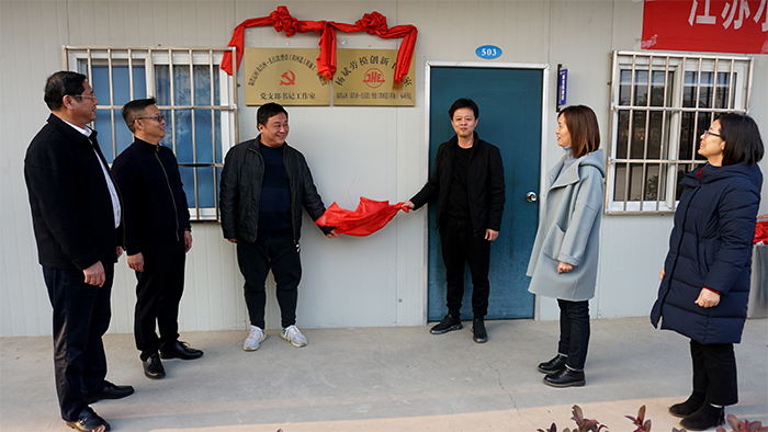 揭牌前,傅建荣局长一行参观了临时党支部、党员活动室及劳模创新工作室。他指出,要全面提高基层党建工作水平,增强基层党组织的创造力、凝聚力和战斗力,确保临时党支部不流于形式。同时,还要注重引领施工人员树立良好的质量意识,在项目内部掀起“争先进、比贡献”的工作热潮,确保工程安全、质量和进度。他还强调,要充分发挥劳模示范引领作用,面向施工一线,探索解决施工重点、难点突出问题,实打实地开展创新工作,推动职工队伍特别是一线职工队伍整体素质水平有效提升。