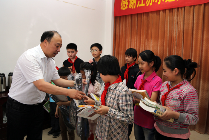 “六一”前夕,世俱杯网页版登录入口党委、工会开展“企校同创”活动,关心贫困儿童的成长。5月28日下午,世俱杯网页版登录入口党委副书记、工会主席姜启生、工会副主席陈金霞来到扬州市三元桥小学,结对帮扶10名家庭贫困的小学生。