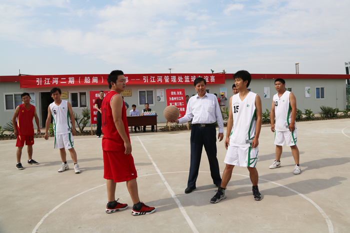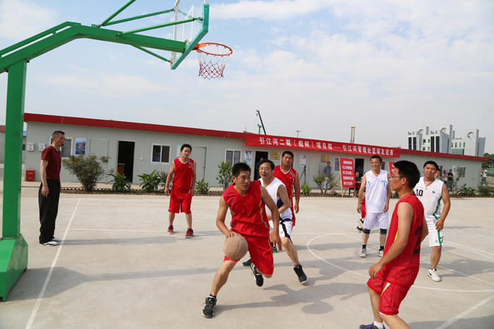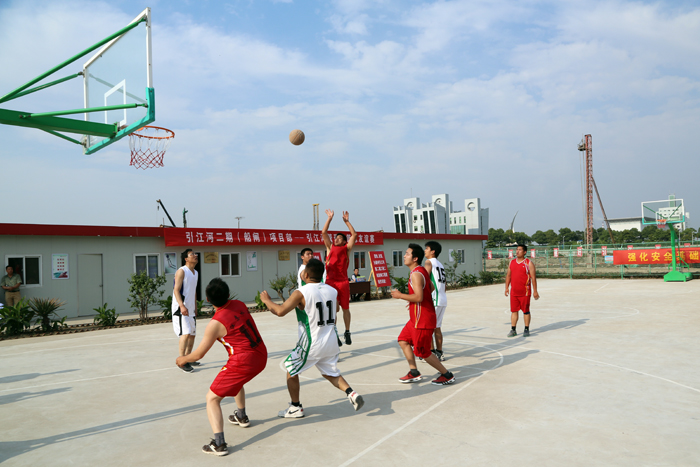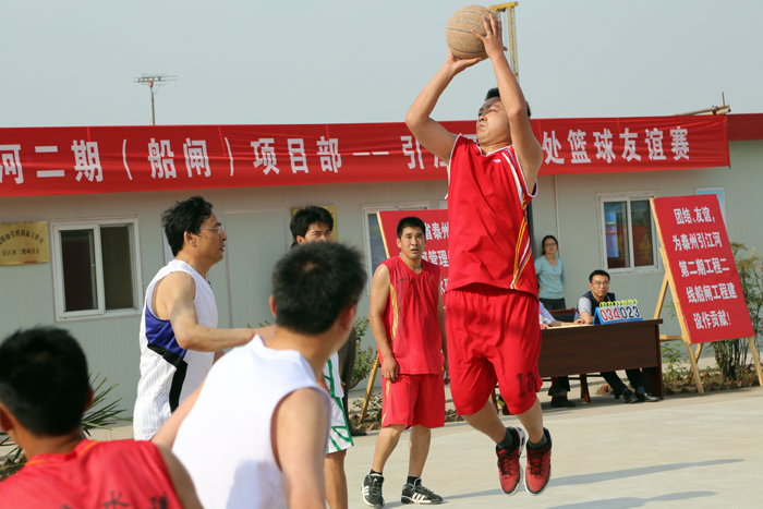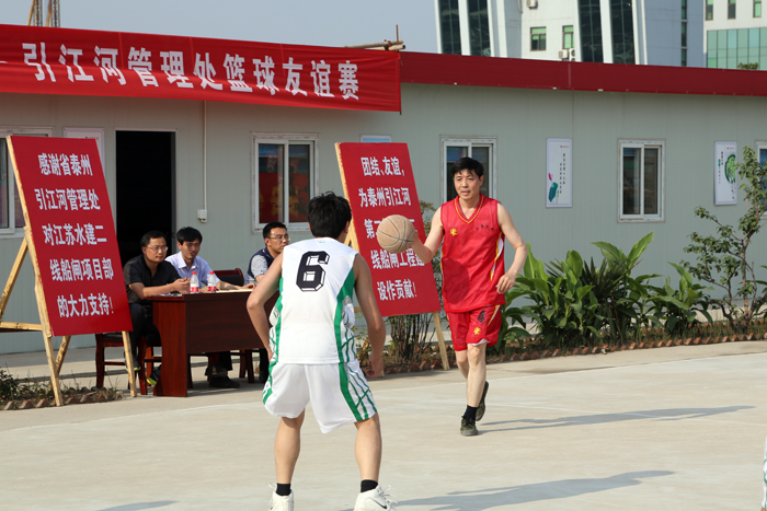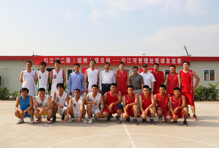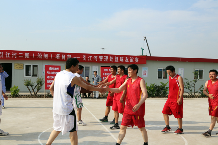 下午,江苏省泰州引江河管理处与我世俱杯网页版登录入口在引江河二期工程二线船闸项目部篮球场举行了一场别开生面的的篮球友谊赛。