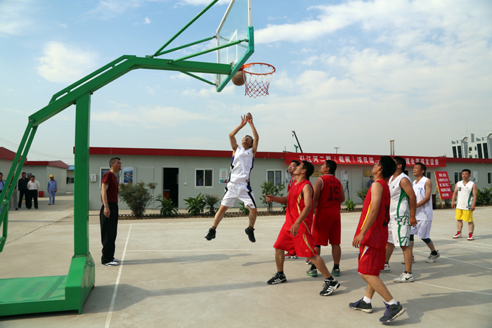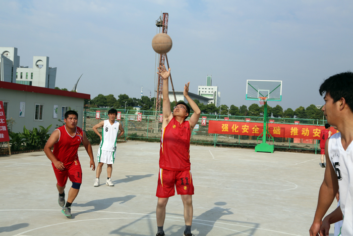 赛前双方队员都做了充分准备。赛场上队员们投入到激烈的拼抢之中,外线传球、内线配合、突破上篮等技术动作精彩纷呈。场外机械穿梭,施工现场一片繁忙景象;场内激情涌动,热情洋溢,观众的加油声一次次将比赛推向高潮。