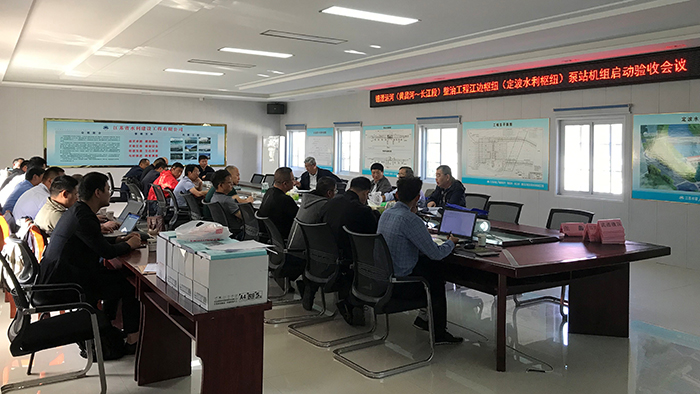 泵站机组启动验收会议由无锡市水利局主持,验收委员会通过察看现场并抽取两台机组开机测试水泵运行效果,查阅工程档案资料,听取建设、设计、施工、监理、厂家、检测、质量和安全监督单位、专家组组长汇报,认为定波水利枢纽泵站机组已完成批复建设内容,工程质量与安全均符合设计及规范要求,机组启动试运行正常,一致同意泵站通过机组启动验收。